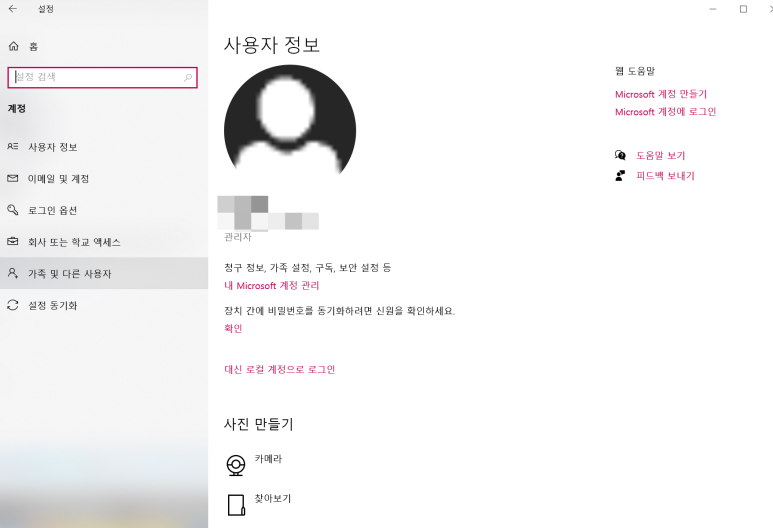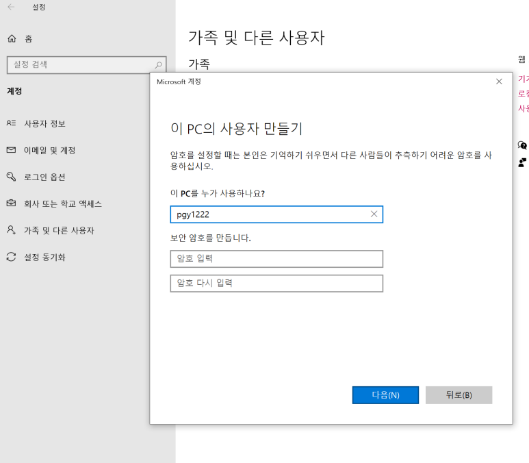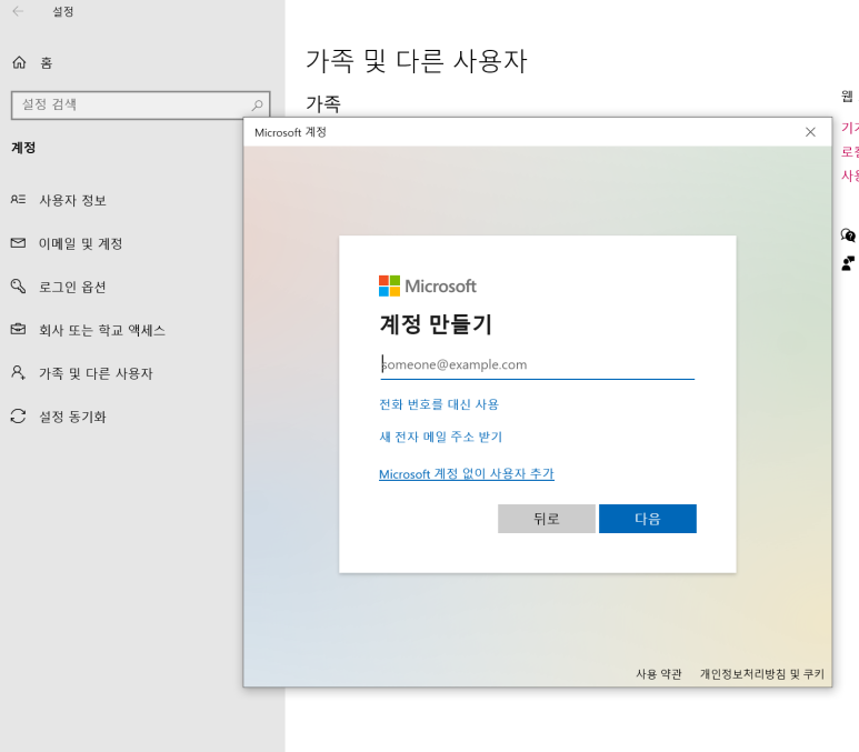 그래서 '가족 및 다른 사용자'를