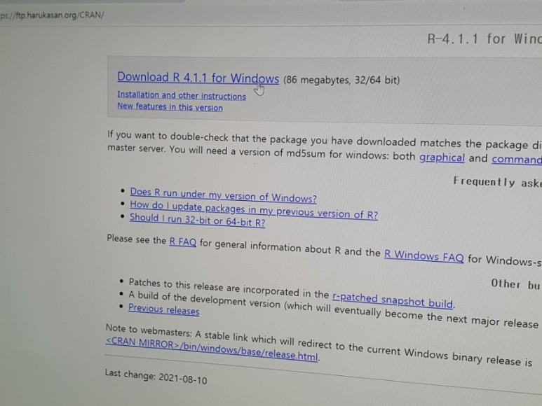 Download R 4.1.1 for Windows 클릭 !