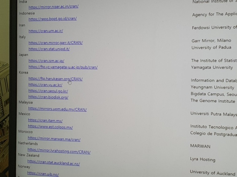 Download의 CRAN 클릭 !