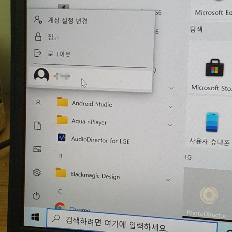 왼쪽 하단에 윈도우 버튼 누르고