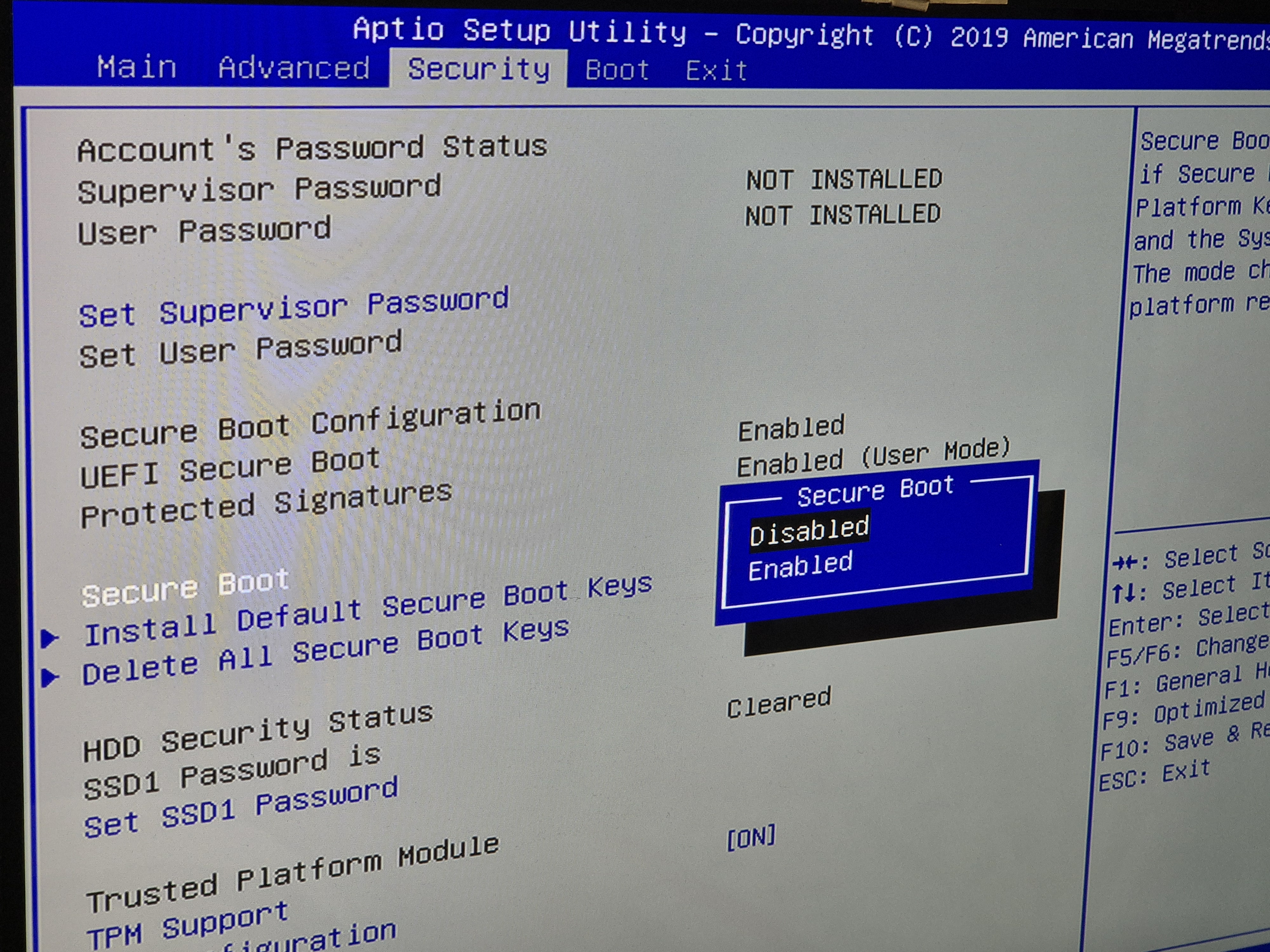 5. 방향키로 'Secure Boot' 클릭(Enter)
